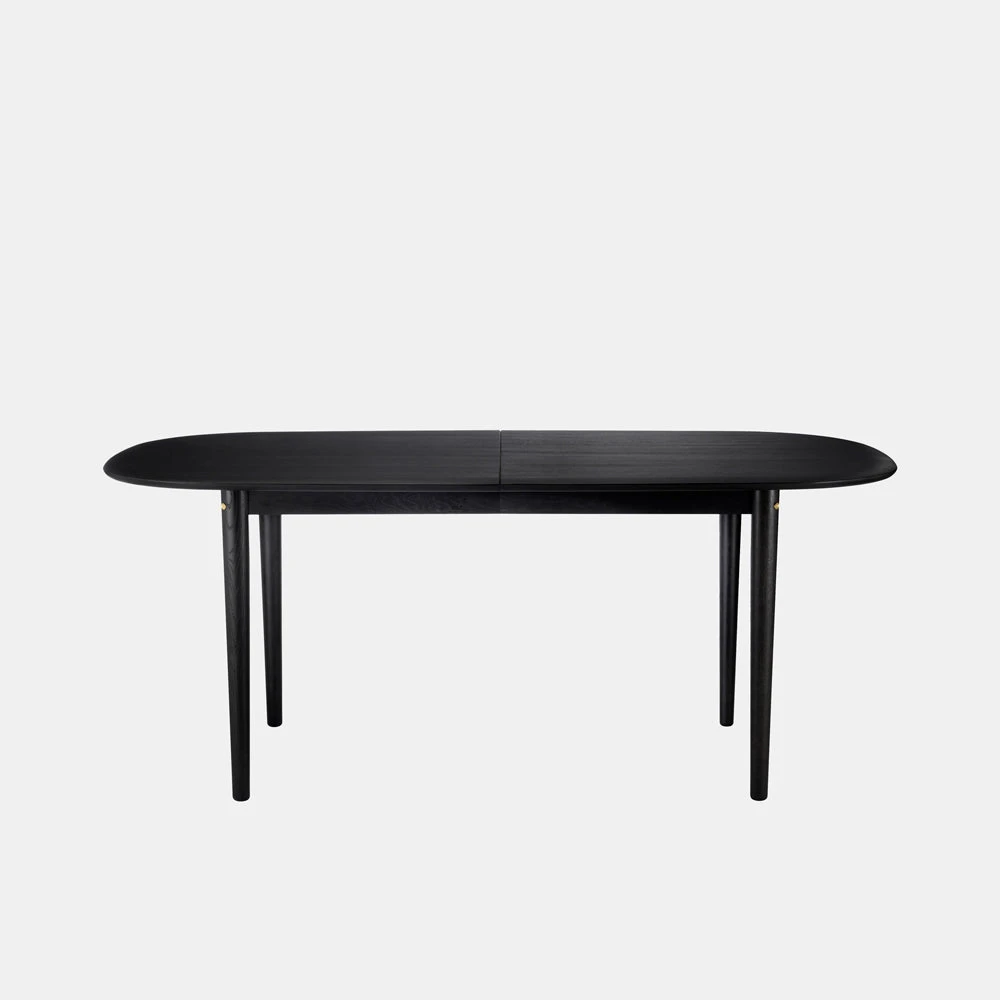 The table is solid oak. The extra leaves are available in beech grey or beech black.