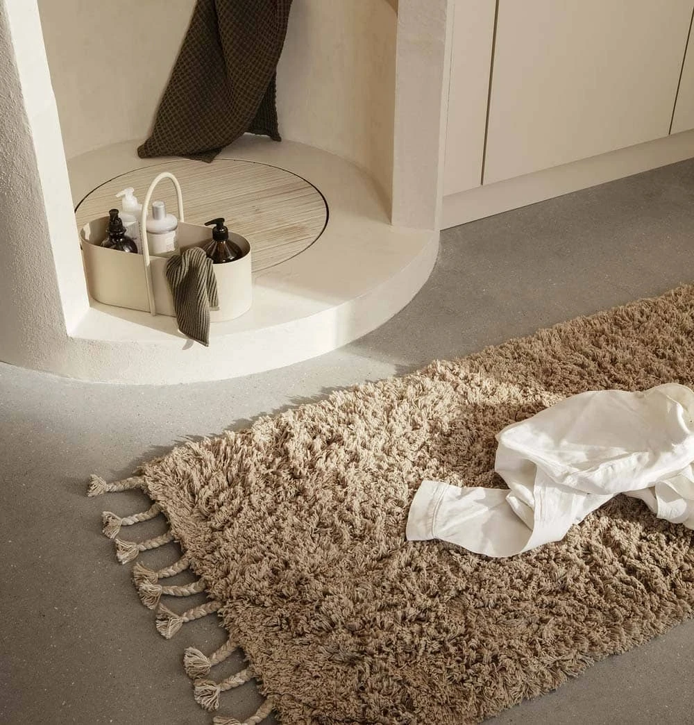 A hand tufted cotton Amass mats, made to keep toes cosy and toasty. The long pile rug features chunky, braided fringes that accentuate its handcrafted expression. Made from 100% soft cotton, Amass Long Pile Runner is well-suited for use throughout the home and can be machine washed when needed.