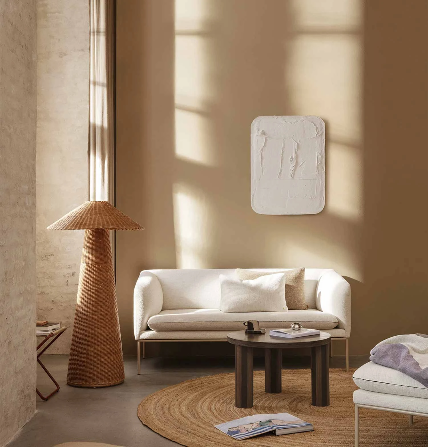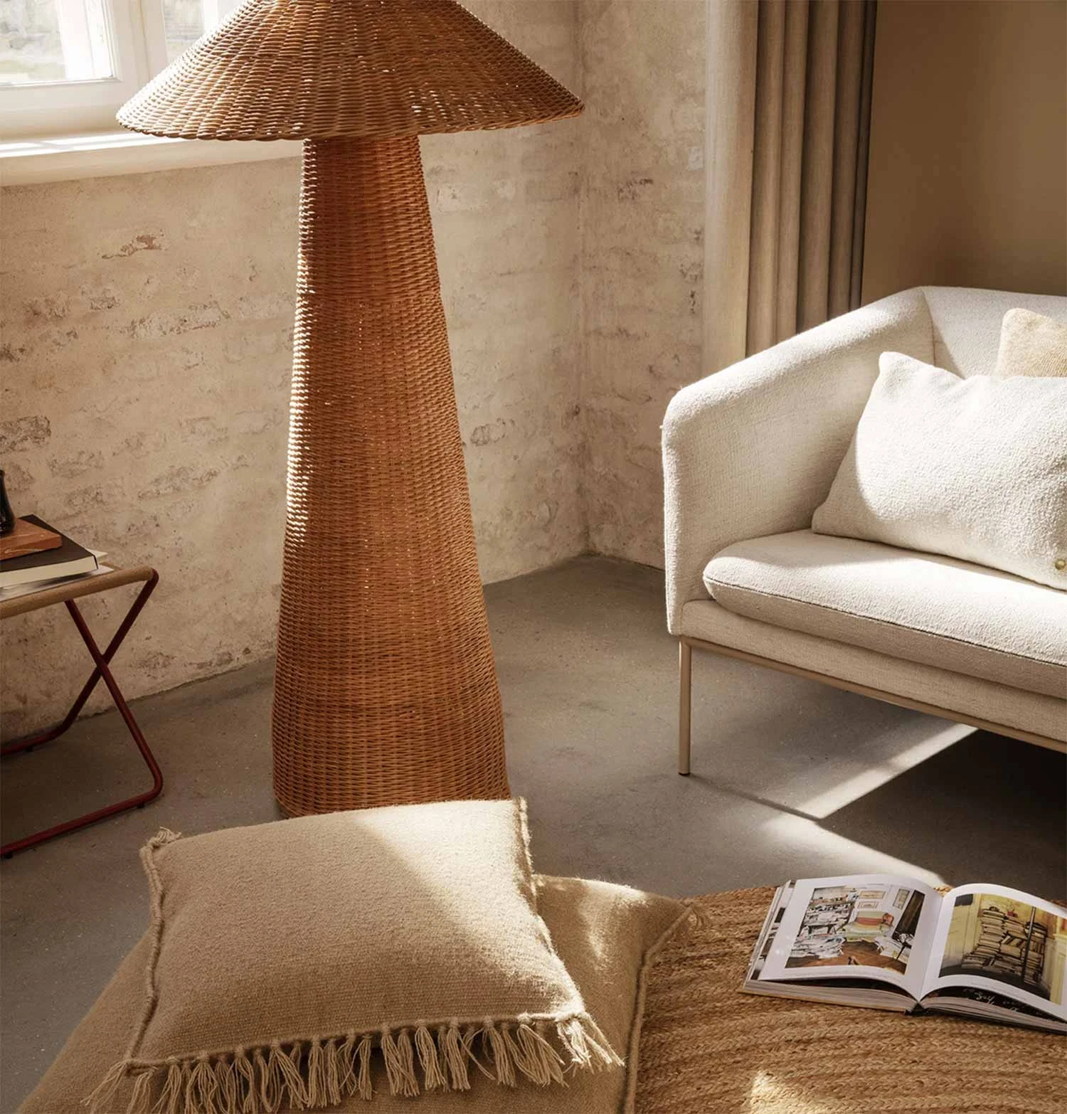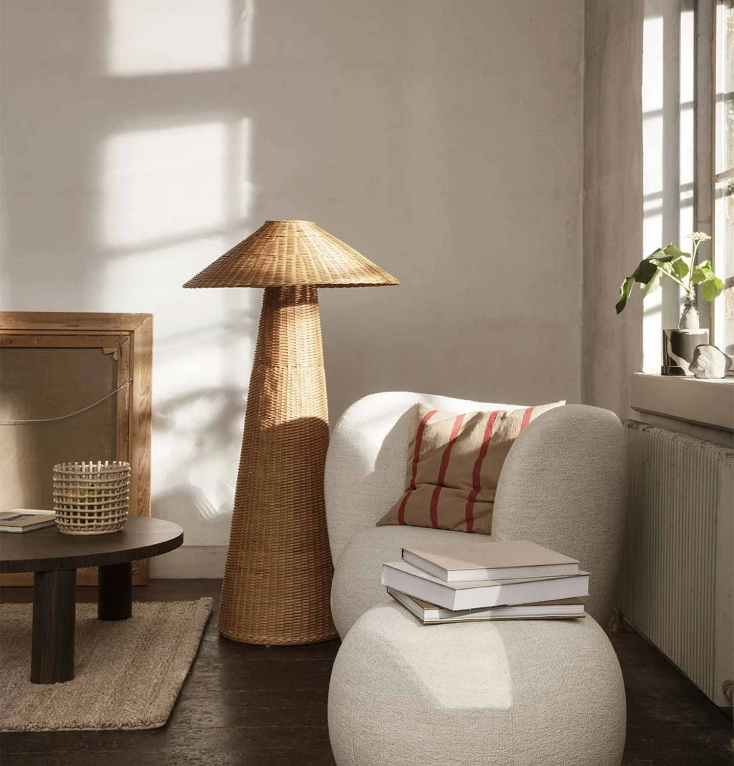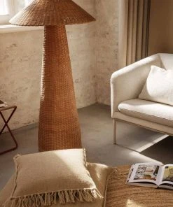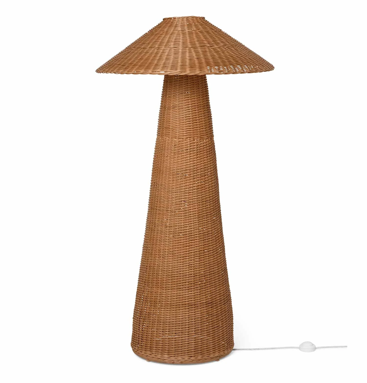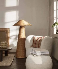 Hand-braided from natural rattan, our Dou series celebrates the lovely contrast between geometric shapes and the organic, textural qualities of the material. This floor lamp features oversized dimensions and a soft, comfortable light, while the shade allows for small glimpses of illumination through the braided rattan, and will add texture and tactility to your living space.