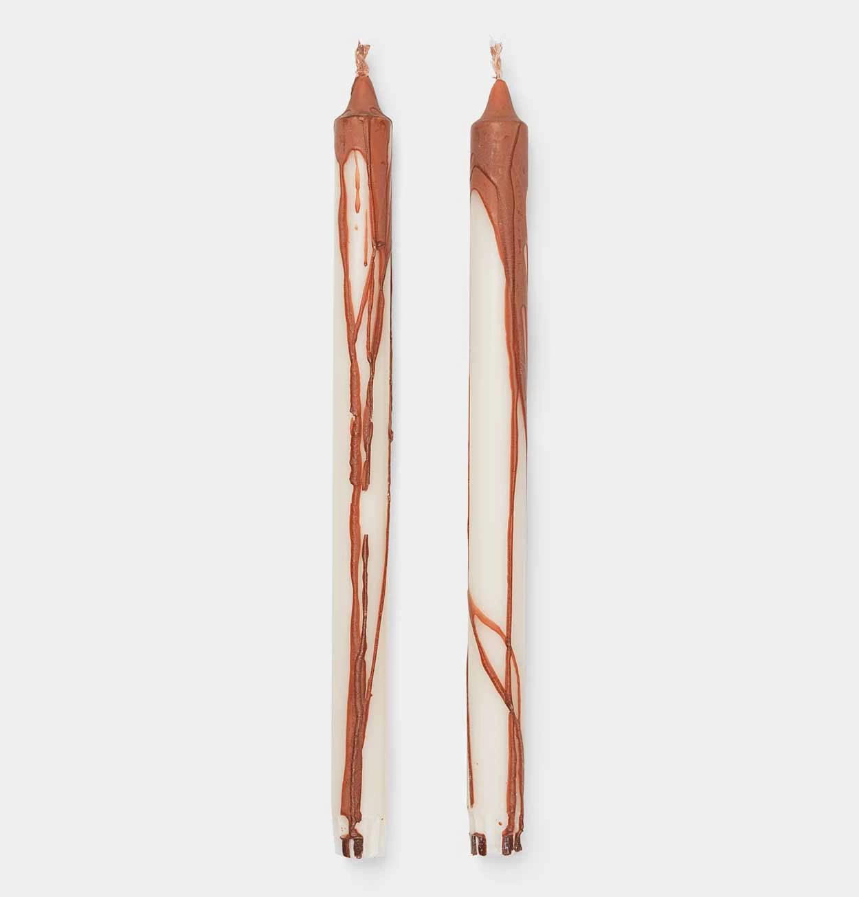 Make a statement with these unique, eye-catching candles. Featuring a contrast colour that merges with the off-white base in a beautiful hand-dripped effect for a dynamic and bold look, the Dryp Candles are made from pure stearin.