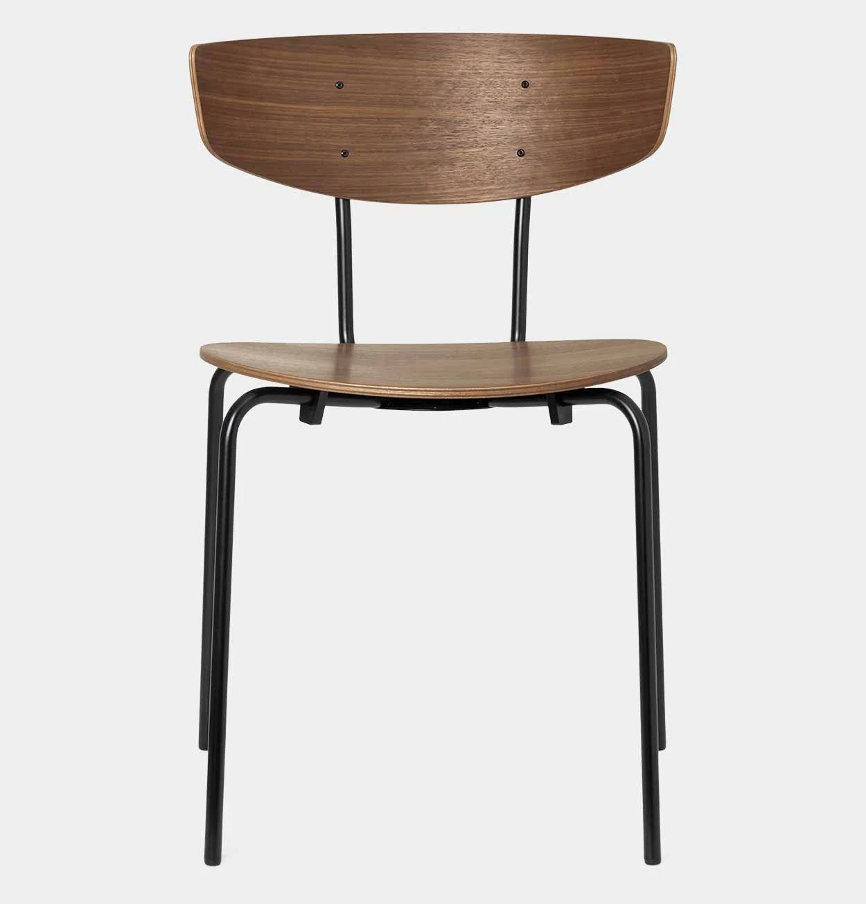 The Herman Dining Chair is elegant, well designed and comfortable enough to hold you for hours and hours. Made from FSC™-certified wood veneer and powder coated steel, the chairs are easily stacked and the broad, curved backrest provides plenty of back support and can also be used to rest your arms. As a nicely added detail, the angles of the wooden backrests are designed so that the chairs can hang from a table. This way, you can easily clean underneath the table and the chairs won’t take up space when you don’t need them. Produced in collaboration with the Danish design studio, Herman Studio.