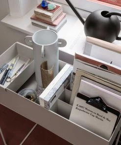 With a series of accessories crafted from powder-coated metal, you can turn the original Plant Box into a multi-functional piece with lots of styling and storage options. This container is made to hang on the edges of the Plant Box, leaving space below the container. That way you can keep order in your smaller items, while still using the rest of the Plant Box for larger things, books, or plants.