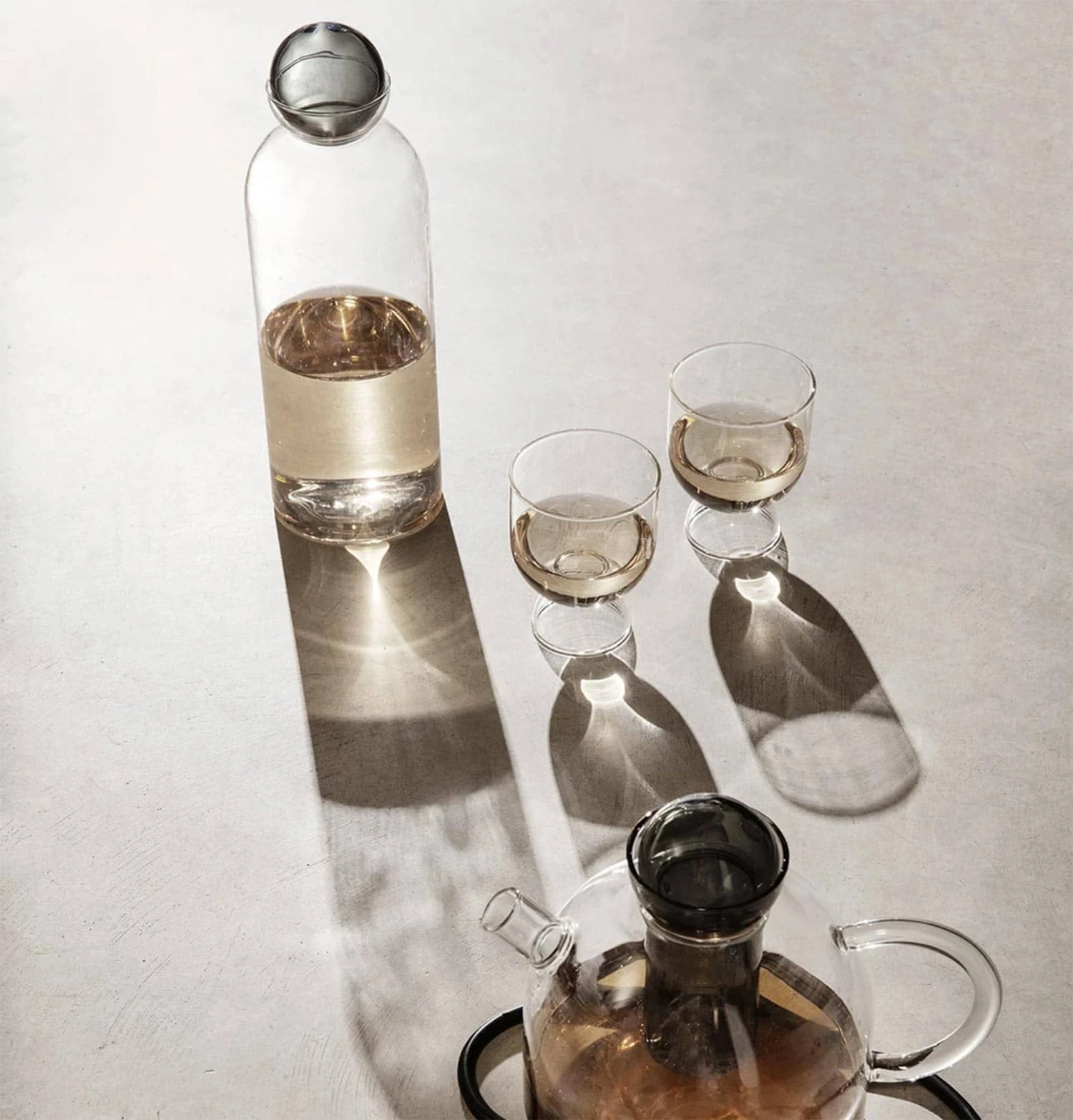 The Still series of mouth-blown glass tableware looks to traditional tea making rituals, simplicity and balance to create everyday objects rooted in beauty and function. The lightweight, hourglass-shaped glasses, available as a set of two, are formed from contrasting sizes of the same gently rounded shape to elevate the design, making it ideal for wine as well as water.
