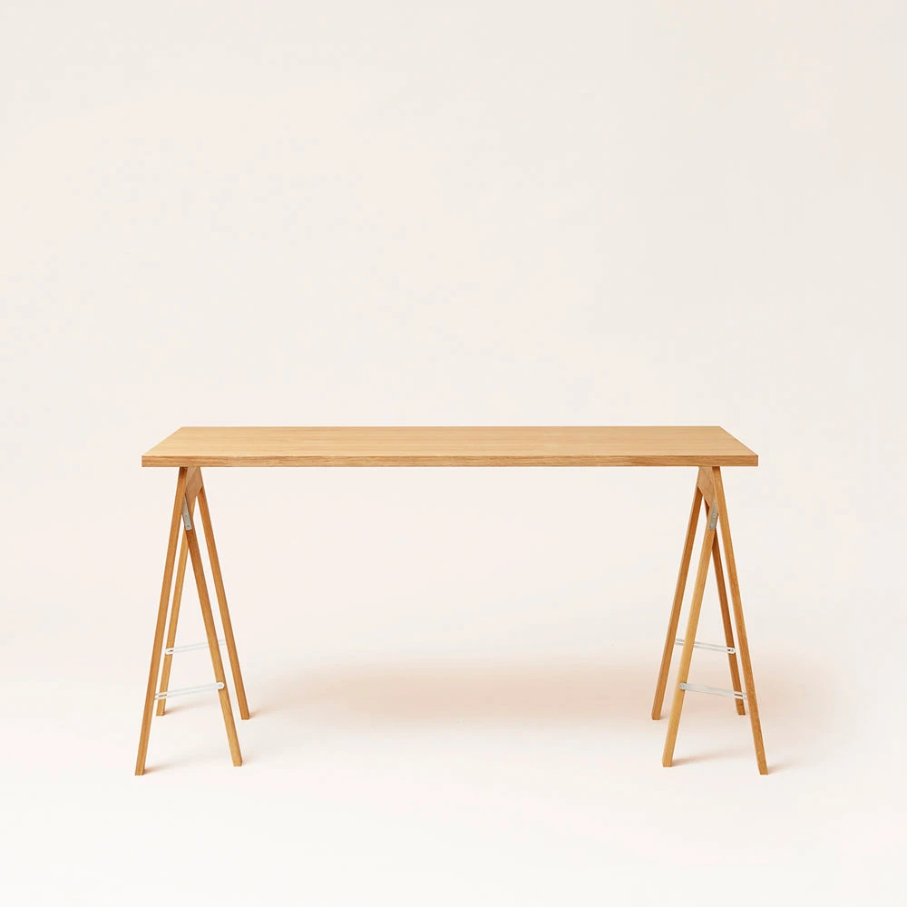 The Linear Tabletop by Form & Refine is heavy and sturdy. It is constructed using a core board of solid Danish pine covered with oak veneer.