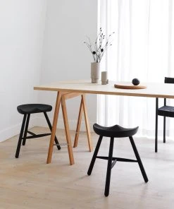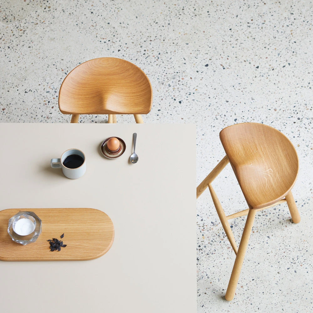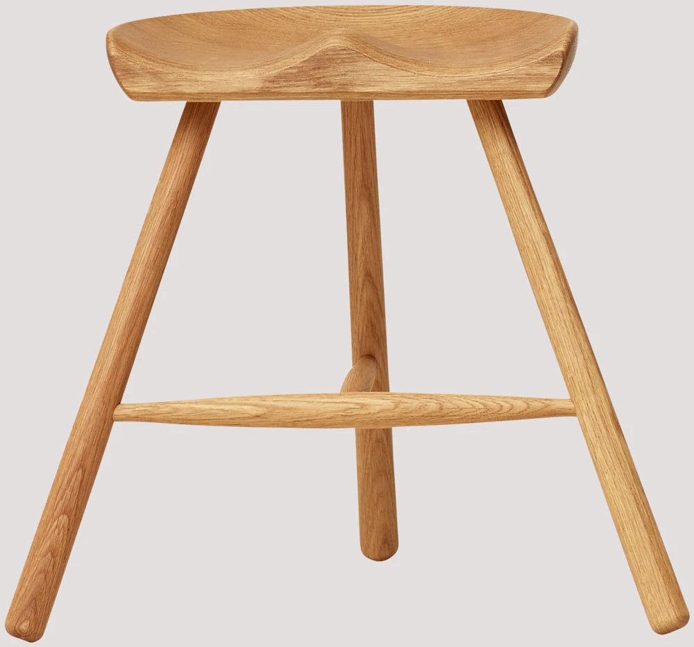 The seat has been rendered out of one large solid piece of wood and because of the variations in the woodgrain, every Shoemaker Chairâ„¢ is completely unique. Together with the turned legs it’s a great example of Nordic design.