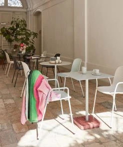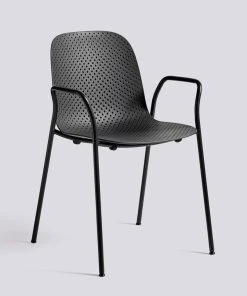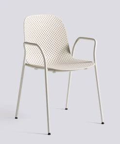 The 13eighty Arm Chair is aptly named after the number of tiny holes in the moulded polypropylene seat. These perforations create a playful characteristic and a sense of movement to the chair. They also have a function in draining rainwater off when the chairs are used outdoors. Stackable.Â