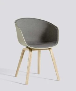 Polypropylene shell with an upholstered seat for comfort on soaped oak or black stained legs. More colour and upholstery options are available, get in touch to find out more.Â