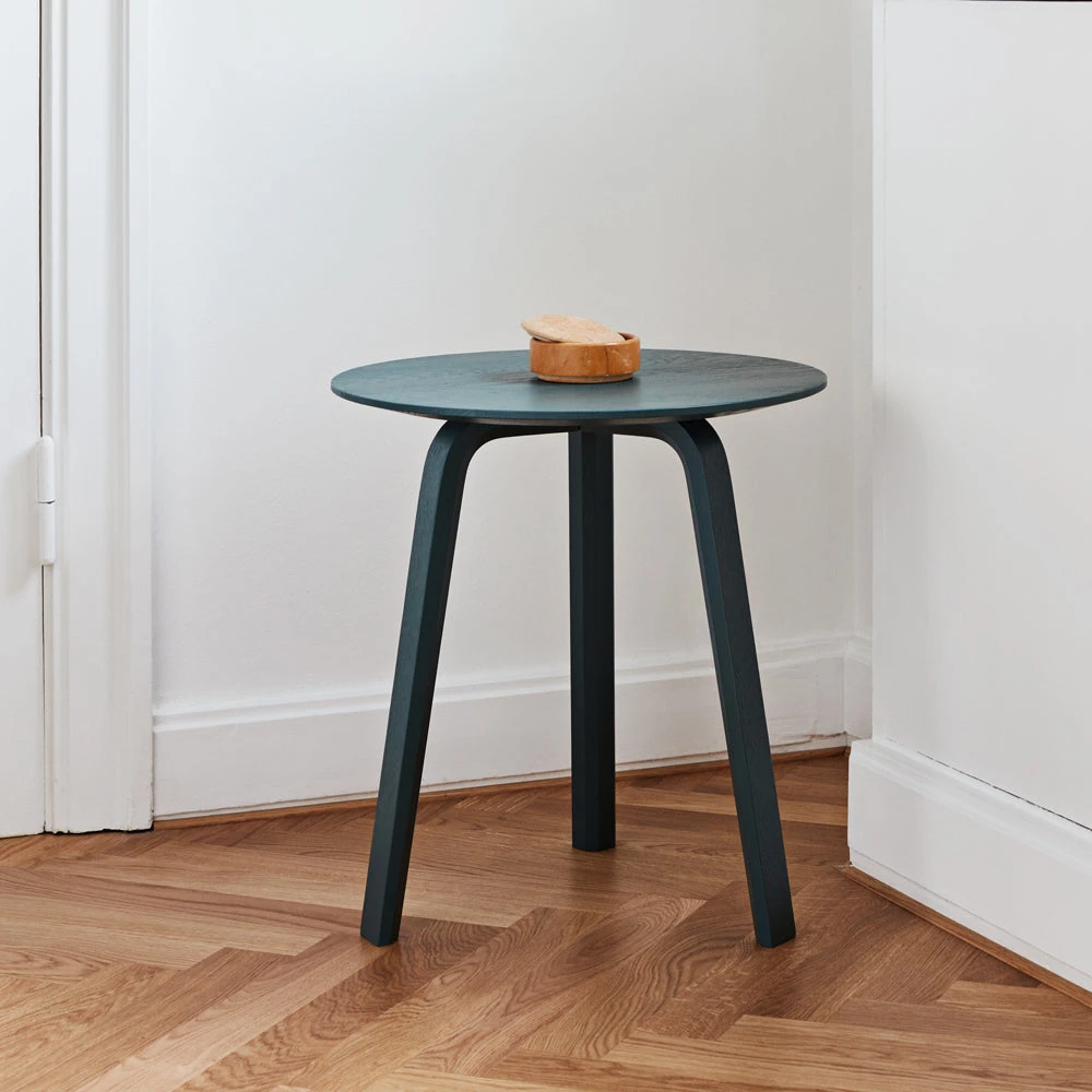 Slim surface and moulded oak veneer legs. Stained in various colours.Â