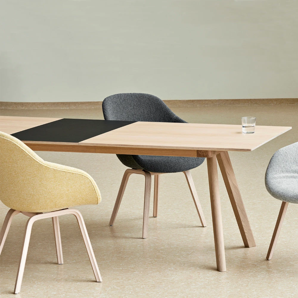 The CPH30 Extendable Table shares the same characteristic angled legs and strong identity with the rest of the collection, yet its extendable function sets it apart.