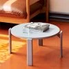 Cast aluminium legs with powder-coated MDF shelves in warm sand.Â