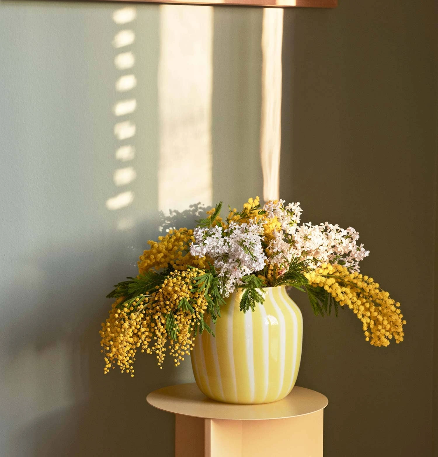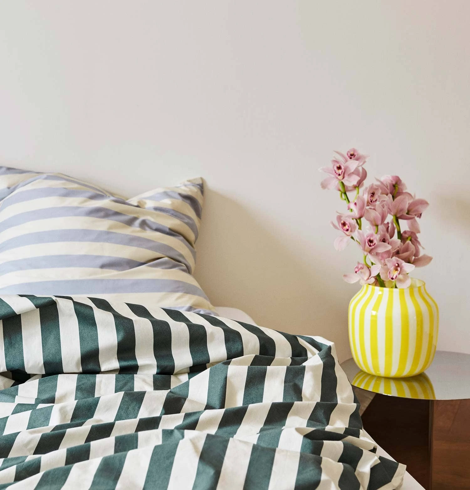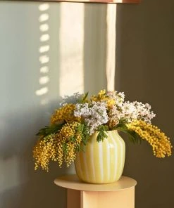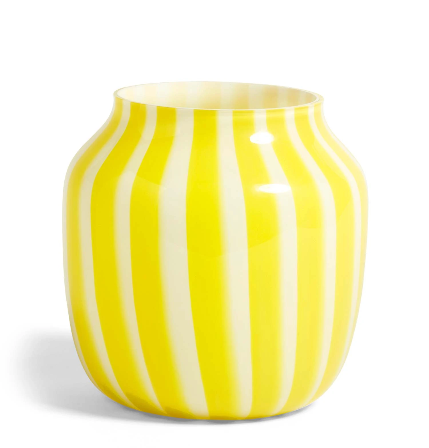 Vertical opaque and clear stripes create a subtle colour variance in Kristine Five MelvΓ¦rβs glass vase collection. Available in two sizes in three different colour combinations.