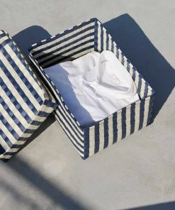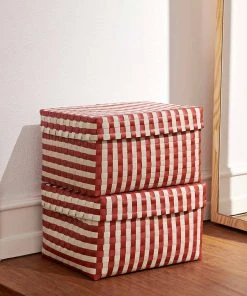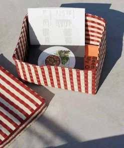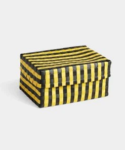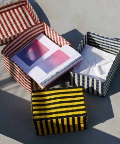 Handmade from recycled plastic strips, Bertjan Pot’s Maxim Stripe Box is a colourful storage box featuring a distinctive striped pattern. The durable woven construction and original design make the box a functional and decorative container for storing toys, magazines, makeup and other items. The box is available in different sizes and colours.
