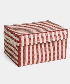 Handmade from recycled plastic strips, Bertjan Pot’s Maxim Stripe Box is a colourful storage box featuring a distinctive striped pattern. The durable woven construction and original design make the box a functional and decorative container for storing toys, magazines, makeup and other items. The box is available in different sizes and colours.