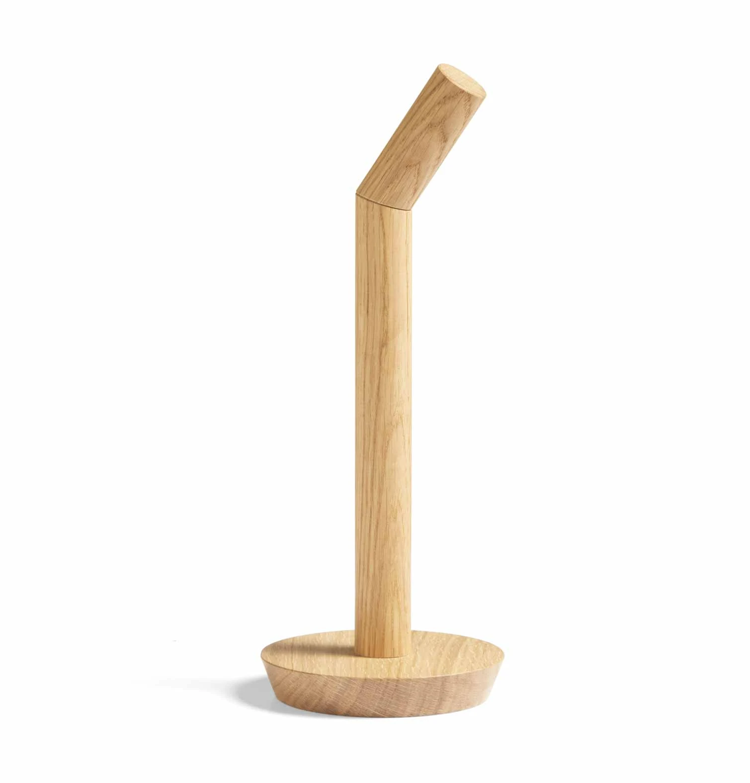 The HAY Porter is an ingenious wooden kitchen roll holder that allows you to put a kitchen roll on a straight rod, and lock it in place by twisting the top of the rod, which also doubles as a handle.