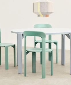 Made with a solid beech frame with laminate or veneer tabletop, the table is available in original colours, as well as new tones selected by HAY.Â