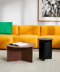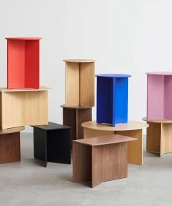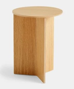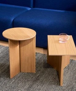 HAY’s Slit Table is a geometric wooden table inspired by paper origami techniques. The slim frame appears folded beneath the tabletop, creating a simple yet sculptural form that is reminiscent of traditional Japanese paper art. The Slit Table is available in different shapes and sizes, and is offered in various wood types and finishes. Compact and versatile, it can be used on its own or arranged in clusters in diverse private or public settings.