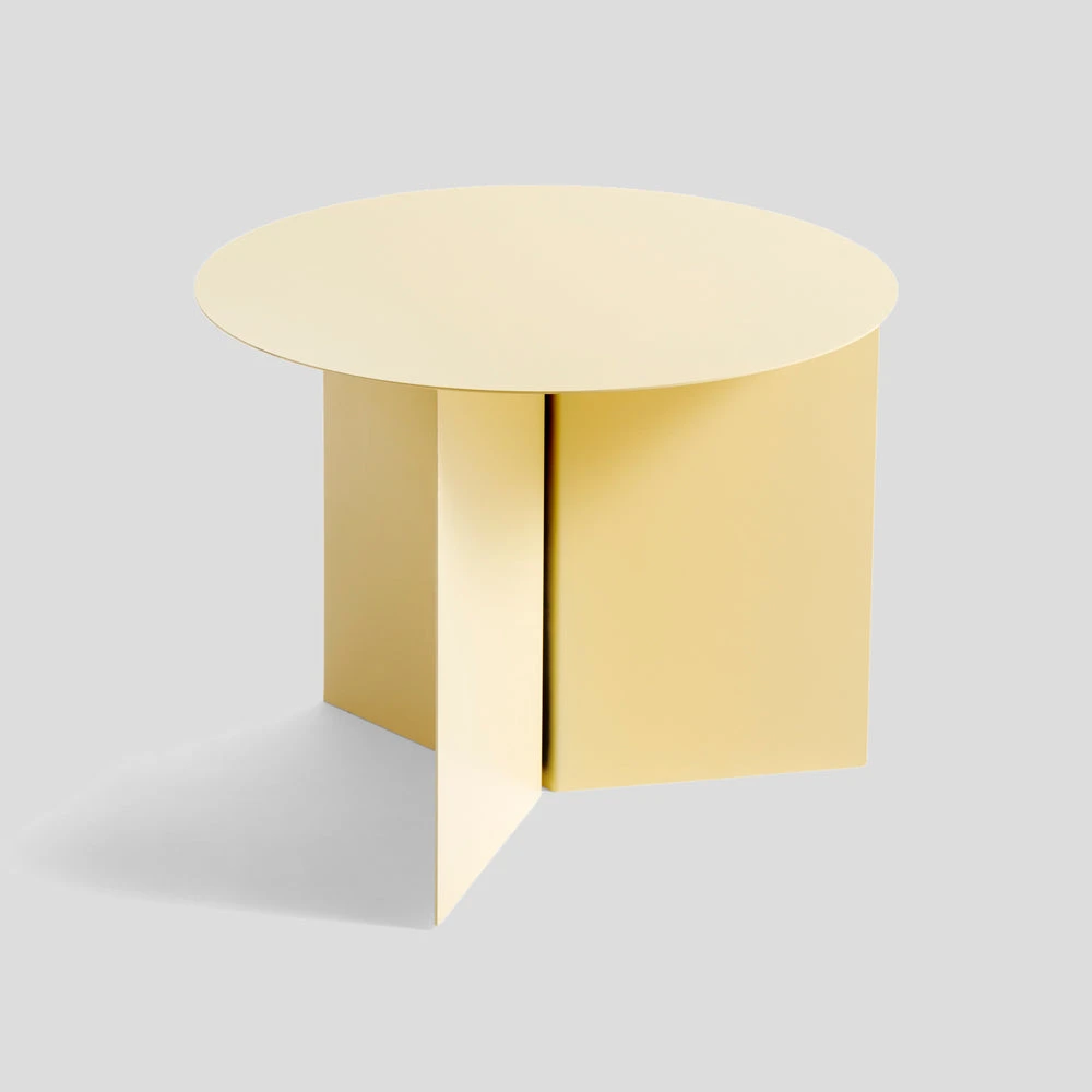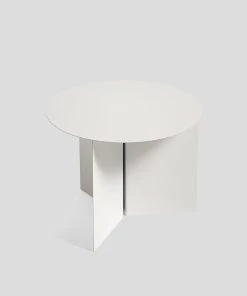 Inspired by paper origami, the Slit Table family comprises of a high side table, low side table and a larger coffee table. Made from powder coated metal in a selection of colours.Â
