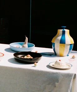 Part of a design collaboration between HAY and artist Laila Gohar that celebrates the joy of meeting family and friends over a good meal, the Sobremesa Stripe Cookie Jar is a beautiful striped storage container designed to add a decorative edge to any table setting or kitchen worktop. Hand-painted in stoneware with a colourful striped pattern that gives each jar a unique quality, it can also be used for storing tea and coffee or non-food items.