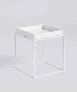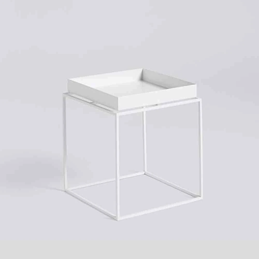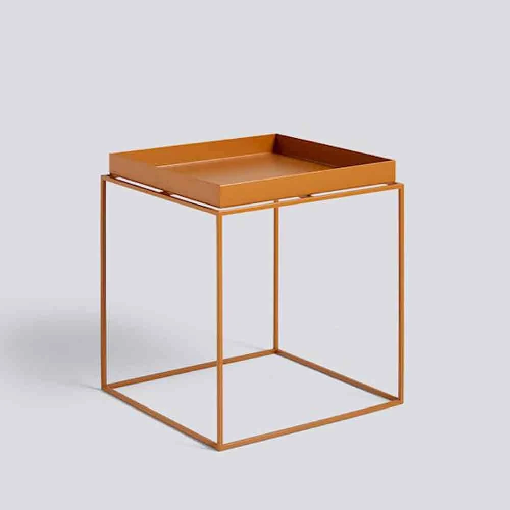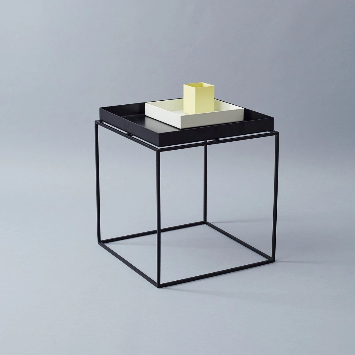The minimal metal Tray Table provides a modern and adaptable alternative to a more conventional coffee table.