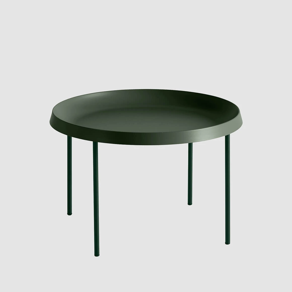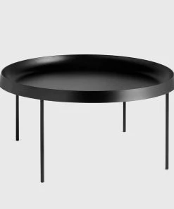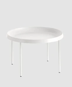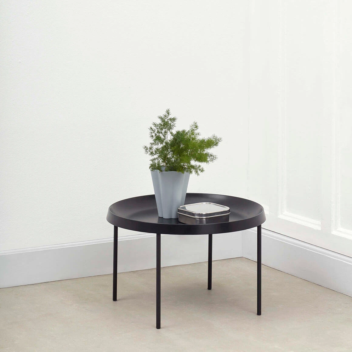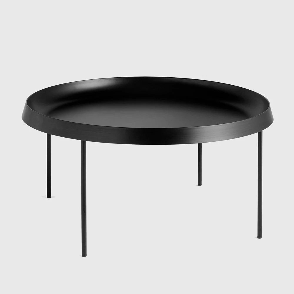 An updated version of a traditional tray table, the Tulou Coffee Table is made up of two elements – a spun steel round tray with an easy to hold edge and a four legged tubular steel frame.Â