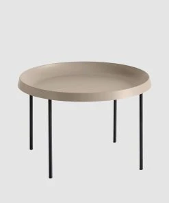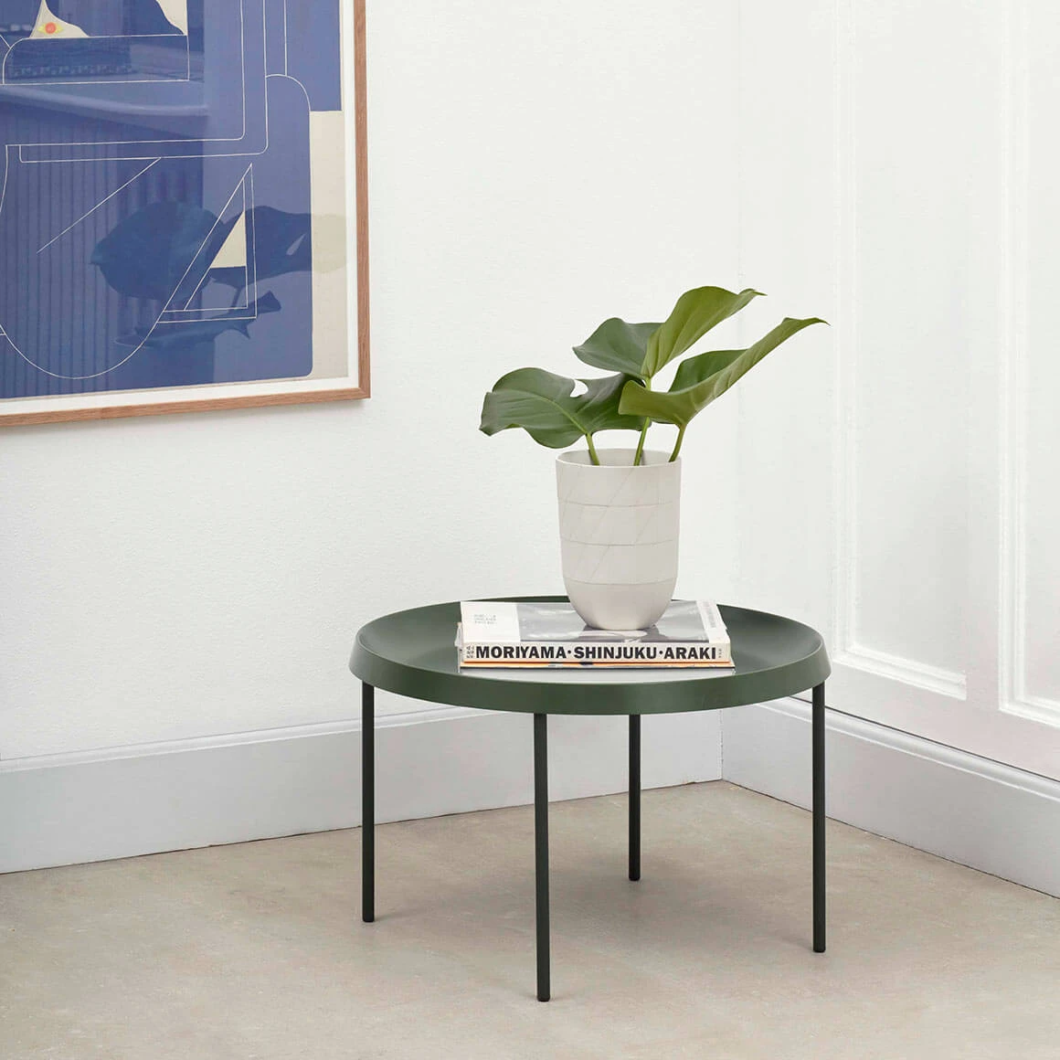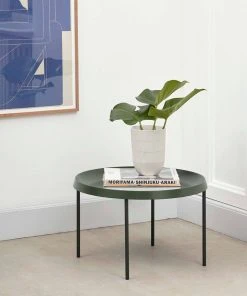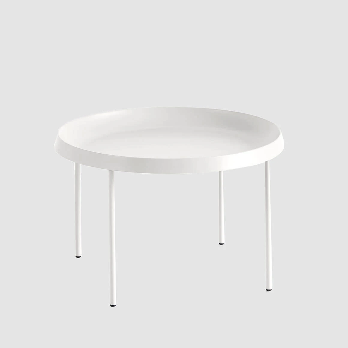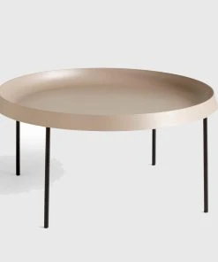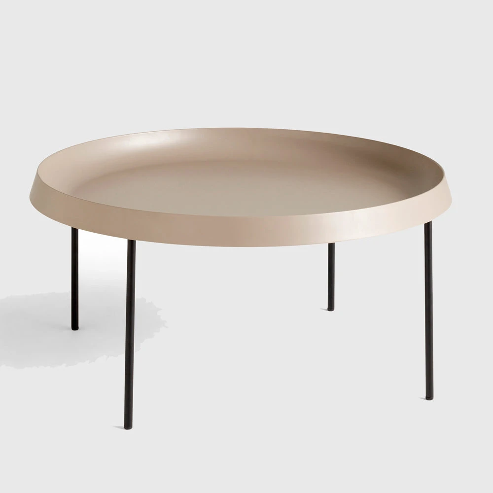 An updated version of a traditional tray table, the Tulou Coffee Table is made up of two elements – a spun steel round tray with an easy to hold edge and a four legged tubular steel frame.Â