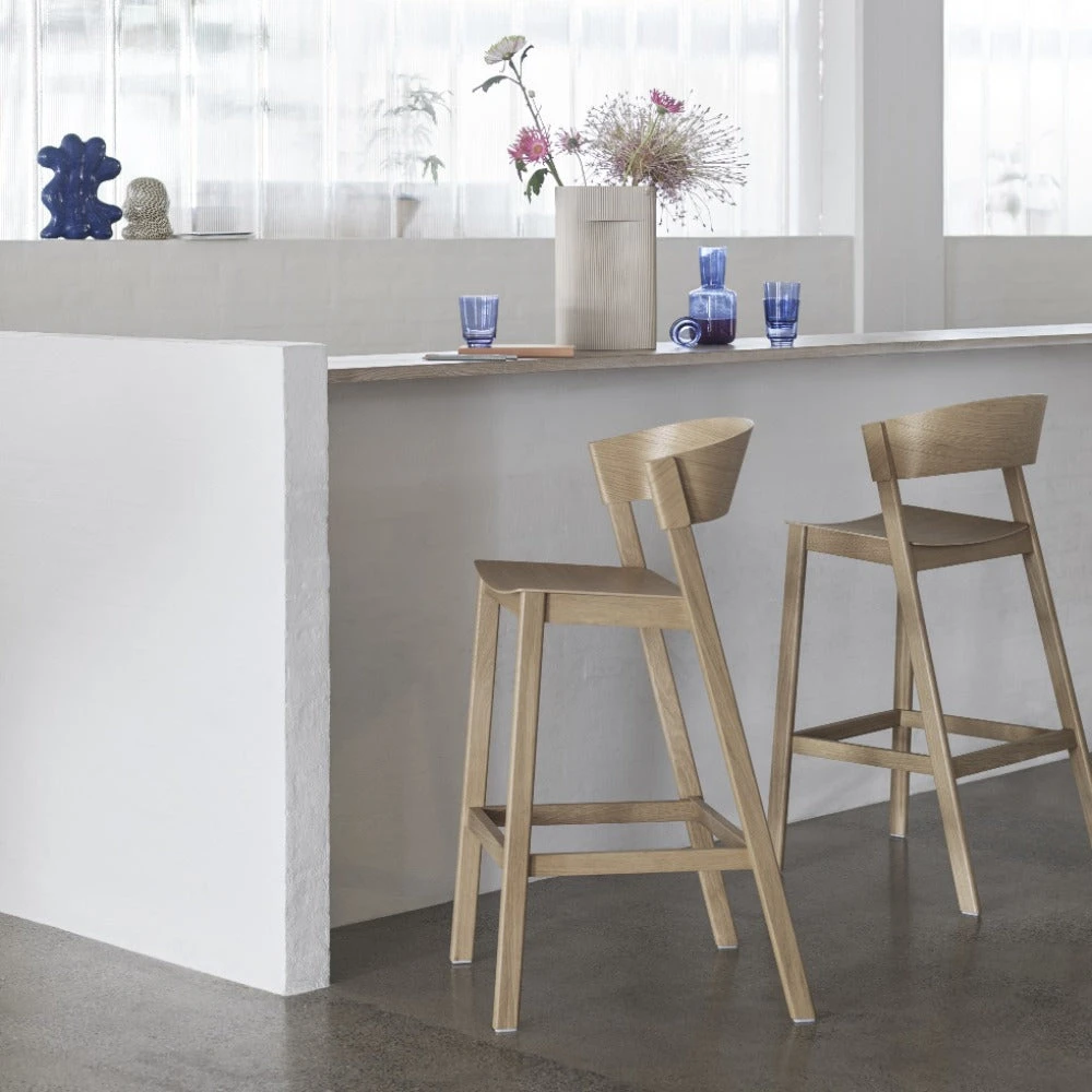 With its curved backrest that folds elegantly around its back legs and ties the design together, the Cover Counter Stool challenges the possibilities of veneer through a forward-thinking approach, echoing the ideas of Scandinavian design.