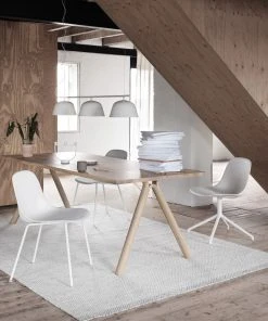 The Fiber Side Chair by Muuto brings a new perspective to the iconic shell chair through its innovative composite of plastic and wood fibres. It has friendly, embracing curves that provide comfort while taking up little space in the room.