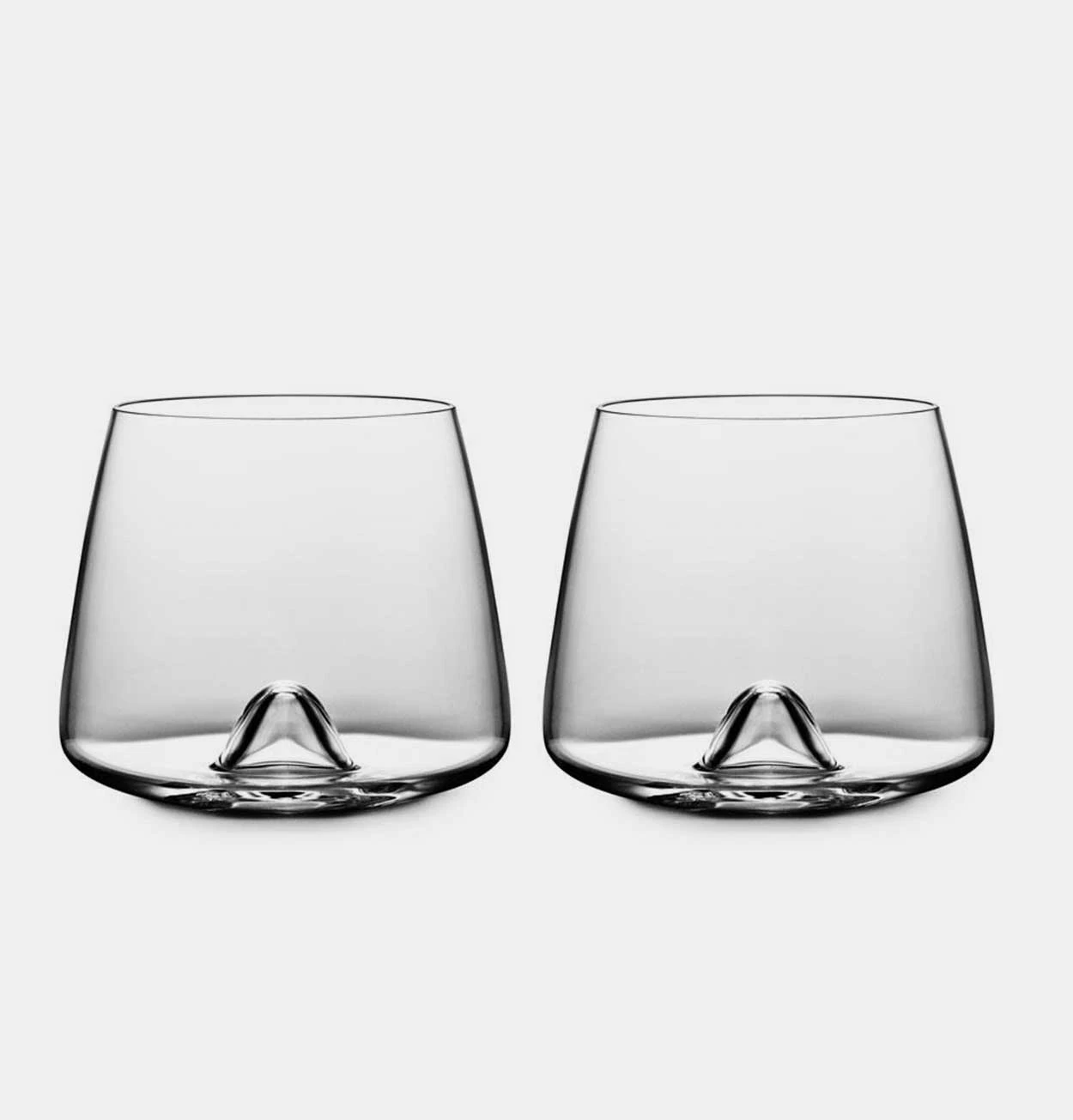 A set of 2 contemporary whiskey glasses from Danish homeware brand Normann Copenhagen. Each glass is carefully mouth-blown, resulting in a unique finish.