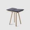 Made up of slender wooden poles and rounded edges – crafted from light FSC-certified Oak. A leather strap keeps the soft, grey wool based cushion in place on the seat.Â